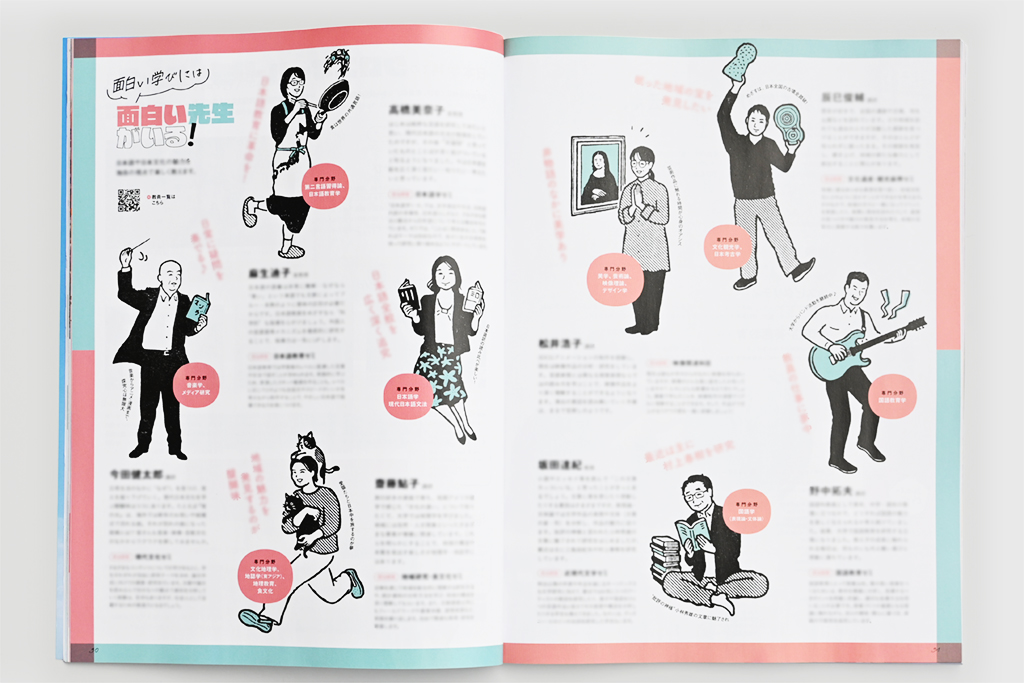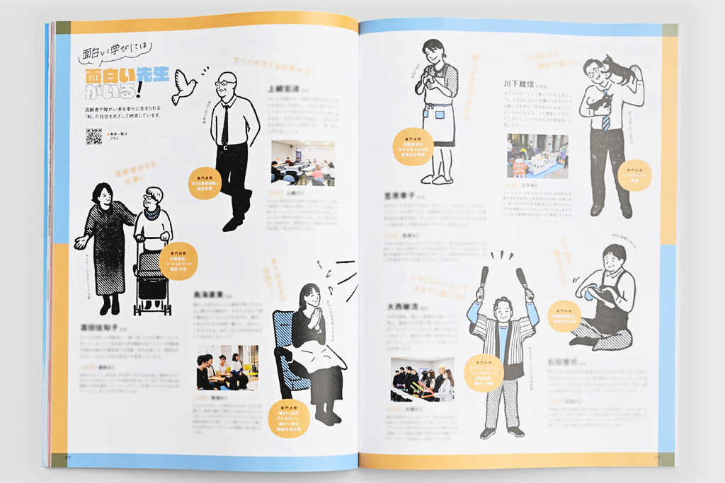 大学案内の先生紹介ページのイラストレーションを担当しました。